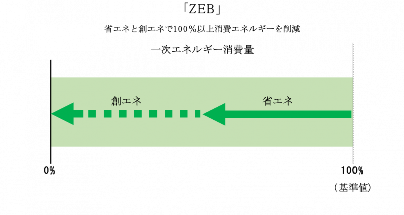 net Zero Energy Building(ネット・ゼロ・エネルギー・ビル)の略。 省エネと創エネによって、年間の一次エネルギー消費量の収支が正味ゼロの非住宅建物です。